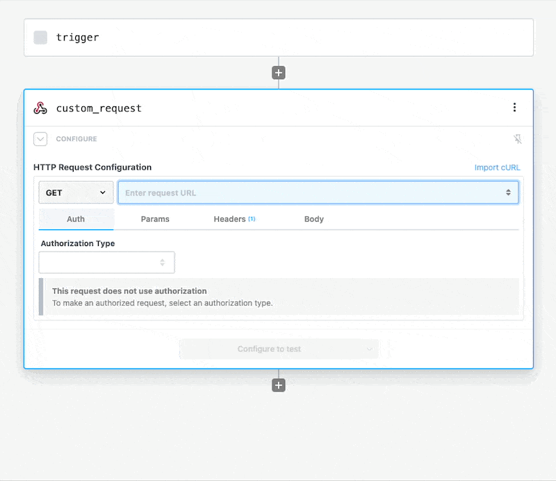 Craft a custom HTTP request in a workflow with a connected account without code. In a new step, select the Send any HTTP Request to start a new HTTP Request action.