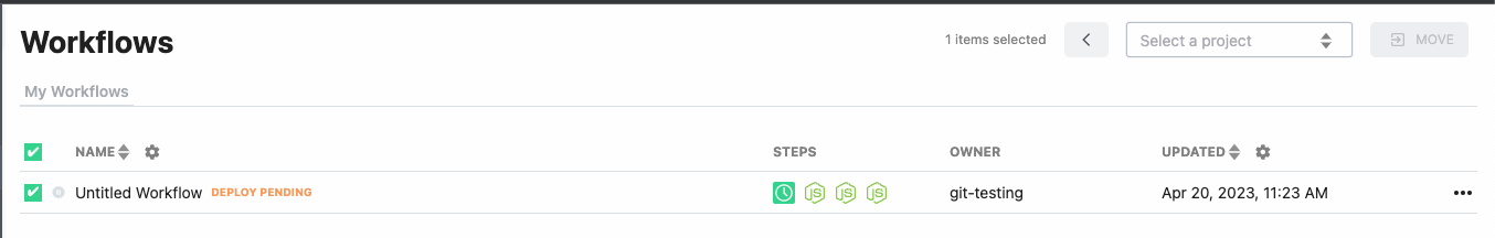 When you merge a Git-backed project to production, all modified resources in the project will be deployed. Multiple workflows may be deployed, modified, or deleted in production through a single merge action.