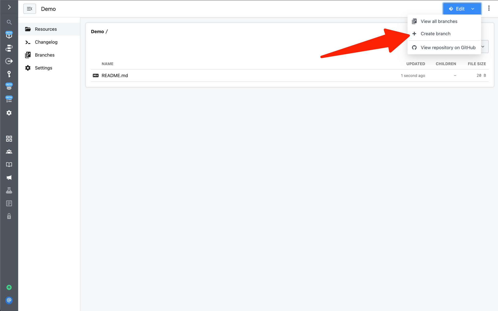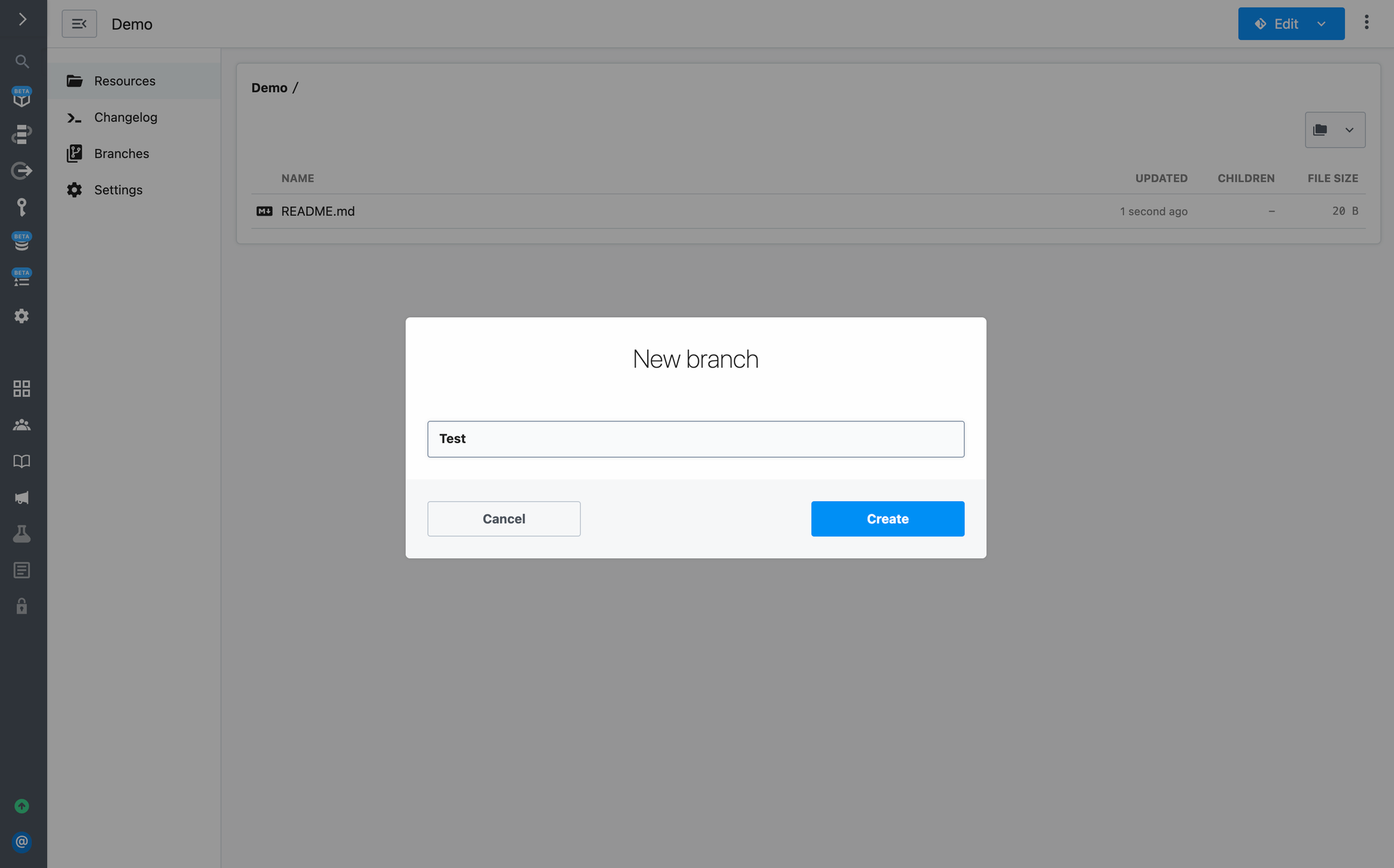 Create a branch to edit a project