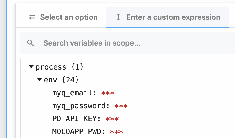 . You’ll see a list of your environment variables in the object explorer when selecting a variable to pass to a step.