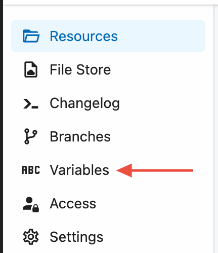 - To manage environment variables within a project, open the project, then click Variables from the project nav on the left