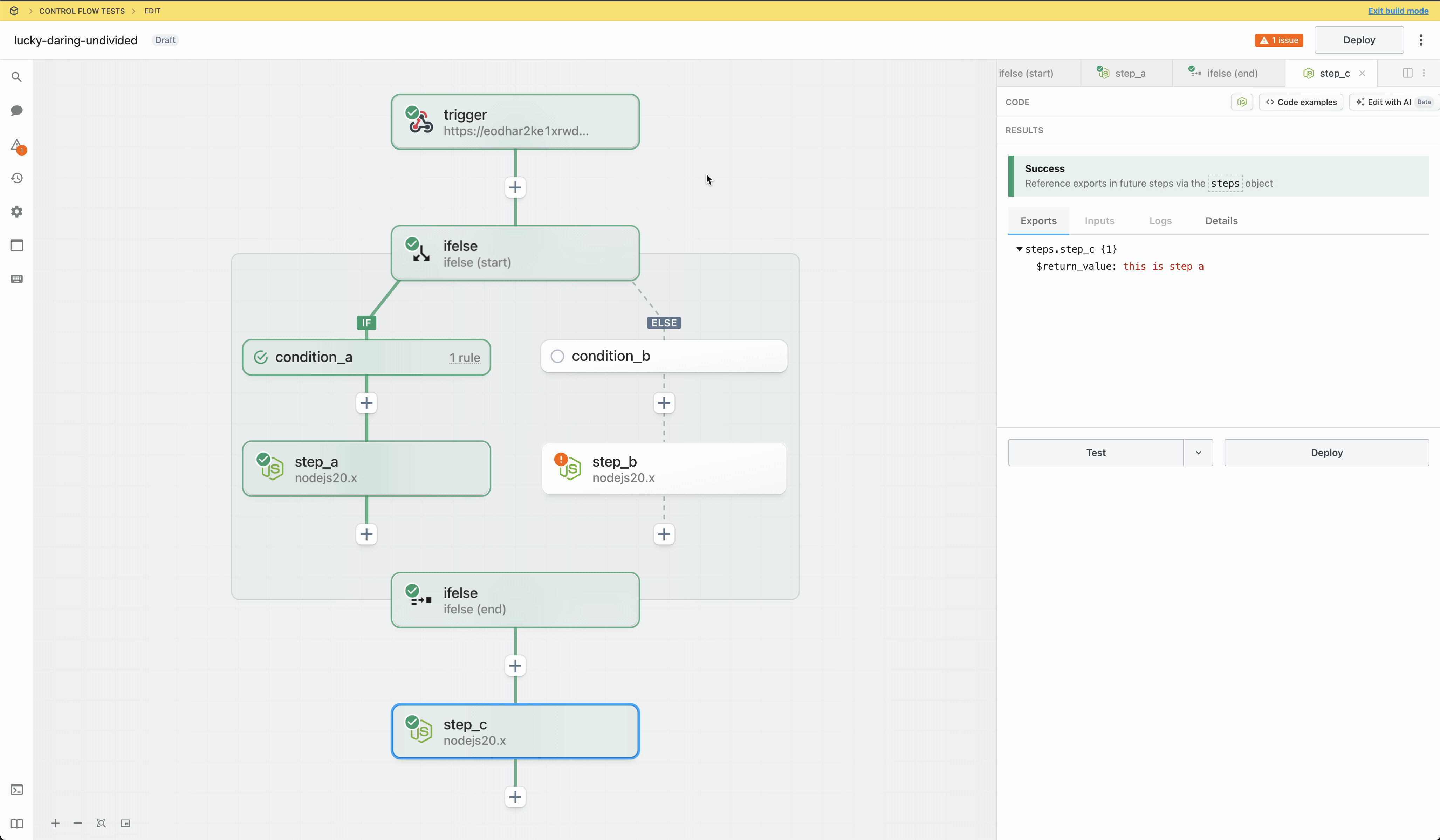 can reference the exported data for an executed branch by referencing steps.ifelse.$return_value