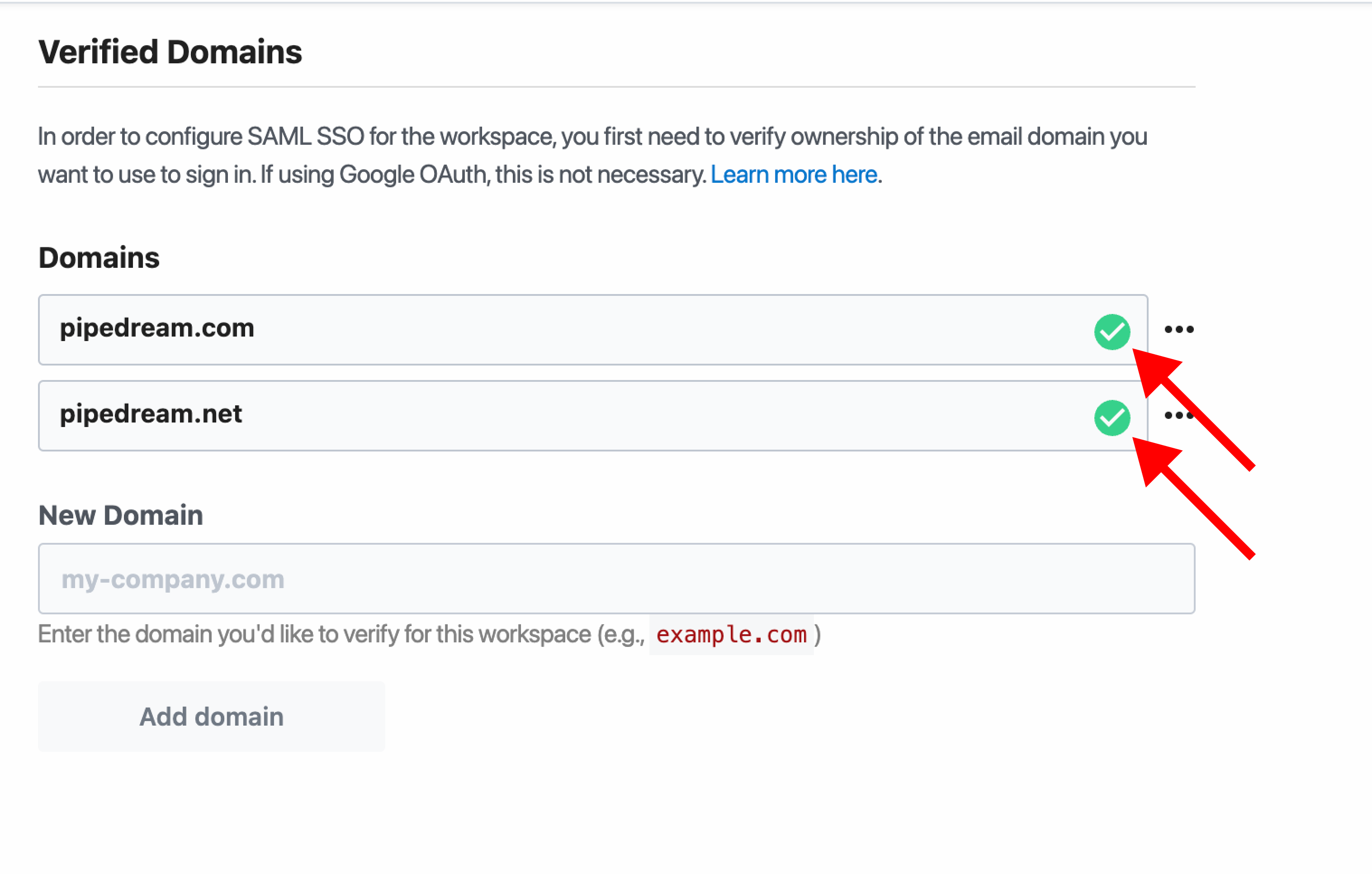 Make sure to verify all your domains. There’s no limit on the number of domains you can verify for SSO, so if you use