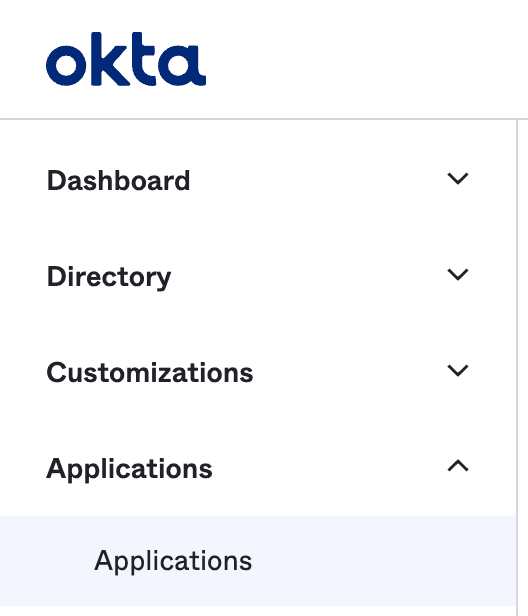 In your Okta Admin dashboard, select the Applications section and click Applications below that:
