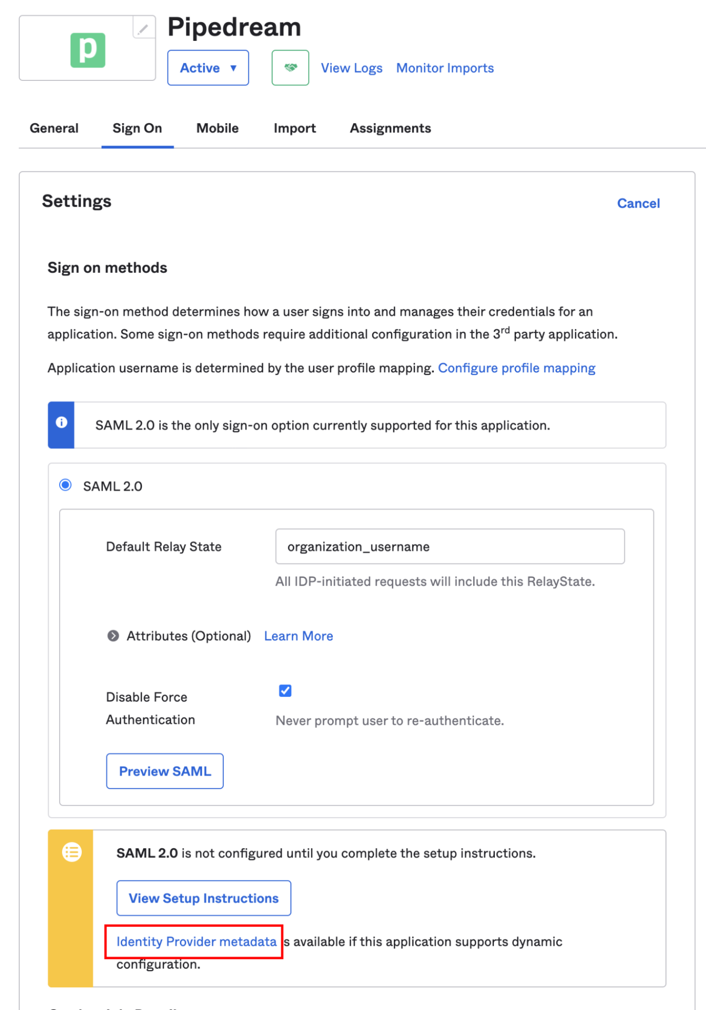 Assign the application to the relevant users in Okta, and Pipedream will configure the associated accounts on our end.